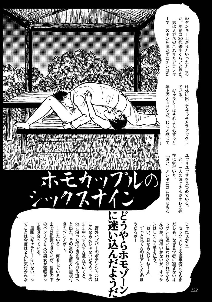 智光山公園では露出カップルとそのギャラリーが集めり懐中電灯をオトコがチンコにあて抜き取り、女の股を開かせてマンコを見せつけてセックスをする。だけではなくホモカップルのフェラやシックスナインなどゲイや変態も集まってくると言う。